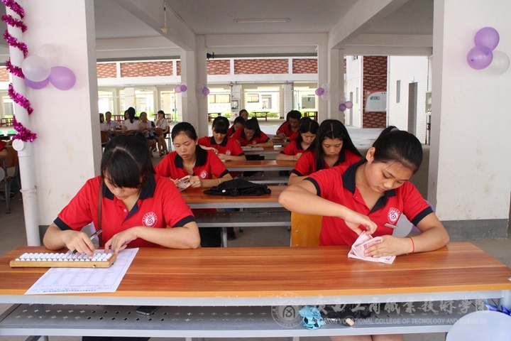 而在酒店管理專(zhuān)業(yè)學(xué)生的西餐擺臺(tái)、中餐擺臺(tái)、餐巾花折疊、調(diào)酒表演等表演既展示出學(xué)生嫻熟的專(zhuān)業(yè)技能,也體現(xiàn)學(xué)院嚴(yán)謹(jǐn)專(zhuān)業(yè)的教學(xué)。同時(shí),會(huì)計(jì)系學(xué)生在學(xué)生公寓架空層展示點(diǎn)鈔、珠算的技能,嫻熟的珠算打法,撥動(dòng)的算珠敲擊著算盤(pán)框,聲聲連珠陣陣響,學(xué)生低頭認(rèn)真點(diǎn)鈔,速度手法技巧令人折服。除此之外,書(shū)法與攝影作品展示,字跡工整,現(xiàn)場(chǎng)書(shū)法,吸引觀眾踴躍嘗試,題詞留下筆墨。學(xué)生各社團(tuán)紛紛展示才藝,各展特色。