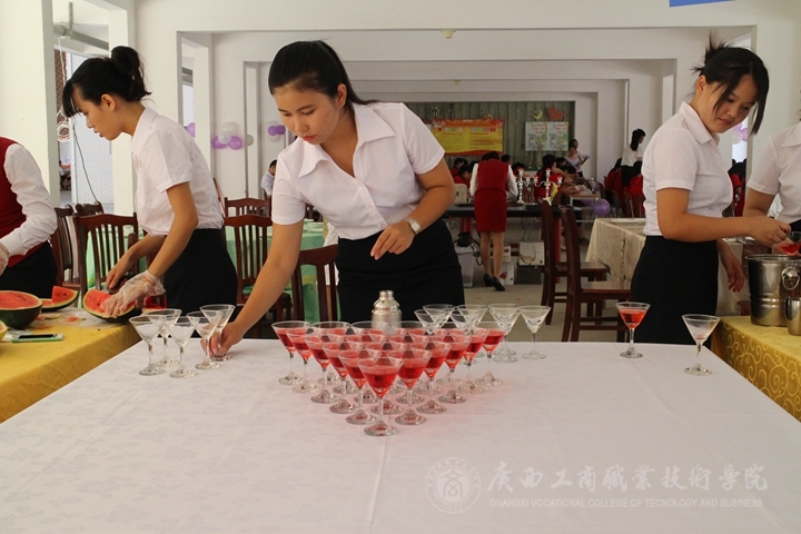 2015年6月27日9時(shí)許,廣西工商職業(yè)技術(shù)學(xué)院教學(xué)樓下面已是人潮涌動(dòng)。和往年的畢業(yè)生供需見(jiàn)面洽談會(huì)暨頂崗實(shí)習(xí)推介會(huì)一樣,仍是有多達(dá)近200家企業(yè)涌入該校,進(jìn)行人才選拔和招聘。不過(guò)今年該校倒是多了足以讓他們津津樂(lè)道的一道風(fēng)景——那就是,可以一邊吃著學(xué)院“烘焙作品展示區(qū)”提供的餅干和點(diǎn)心,一邊觀看小舞臺(tái)上的禮儀風(fēng)采展演,或者一邊欣賞旁邊“調(diào)酒技能展示區(qū)”的花樣調(diào)酒表演,順便請(qǐng)現(xiàn)場(chǎng)表演繪畫(huà)的同學(xué)畫(huà)張素描帶回去,真是一舉多得。不少企業(yè)表示,這樣輕松愉快的“嘉年華式”雙選會(huì),還是第一次遇見(jiàn)。