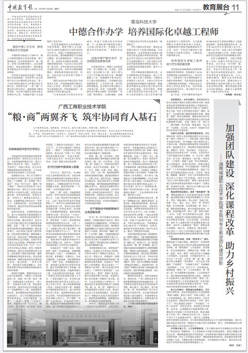 推進“三教”改革。實施教師隊伍改革,柔性引進高層次高技能高職稱人才,入選廣西高等學(xué)校卓越學(xué)者1名,入選廣西高等學(xué)校高水平創(chuàng)新團隊1個,指導(dǎo)學(xué)生參加國家職業(yè)技能競賽獲獎11項,獲得自治區(qū)級職業(yè)技能競賽一等獎近40項。啟動教材、在線課程資源建設(shè),建設(shè)國家規(guī)劃教材10部,獲自治區(qū)“十四五”首批職業(yè)教育規(guī)劃教材建設(shè)立項4項,推薦參加“十四五”職業(yè)教育國家規(guī)劃教材建設(shè)項目4項,入選“十三五”職業(yè)教育國家規(guī)劃教材書目2門。全面推行線上線下混合教學(xué),建設(shè)超星智慧教學(xué)平臺1個,“基于成果導(dǎo)向的高職院校教學(xué)質(zhì)量評價體系構(gòu)建的研究”獲廣西教育科學(xué)“十四五”規(guī)劃2022年度教育評價改革專項重點課題立項。2022年,學(xué)院獲評國家技能人才培育突出貢獻單位。