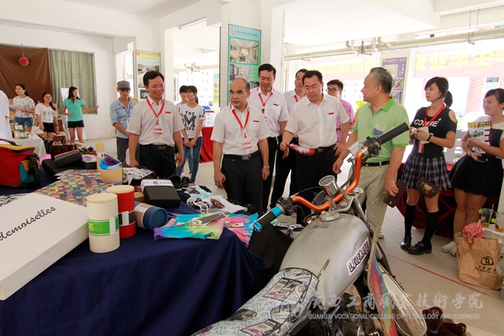 2015年6月27日上午,廣西壯族自治區教育廳巡視員林寧蒞臨我院參觀教學成果展。覃武云書記、陳杰院長、李維副院長等學院領導全程陪同參觀。