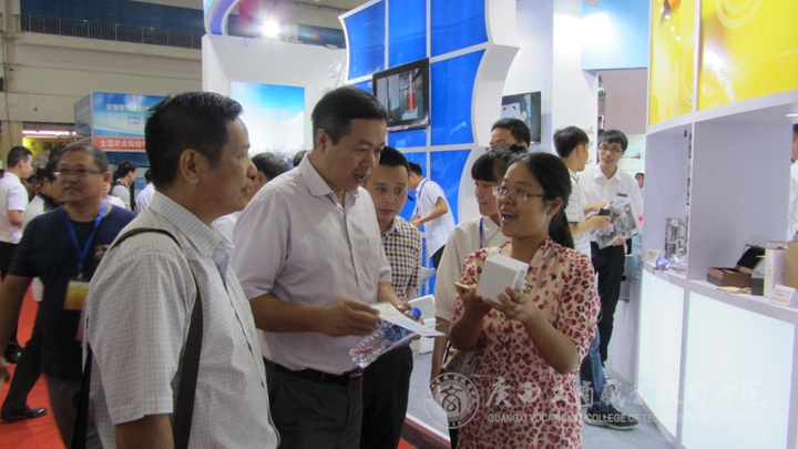 7月2日,2015年全國職業院校學生技術技能創新成果交流賽在天津國際展覽中心拉開帷幕。來自全國各地職業院校的學生技能作品和項目在這里進行展示,展現了廣大職業院校學生的技能水平,同時也充分展現了近年來全國職業院校的教育教學成果。我院李維副院長率隊參觀了本次交流賽,重點參觀考察了廣西展區及各特色院校的展位。