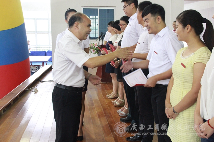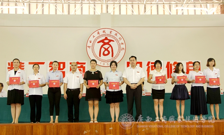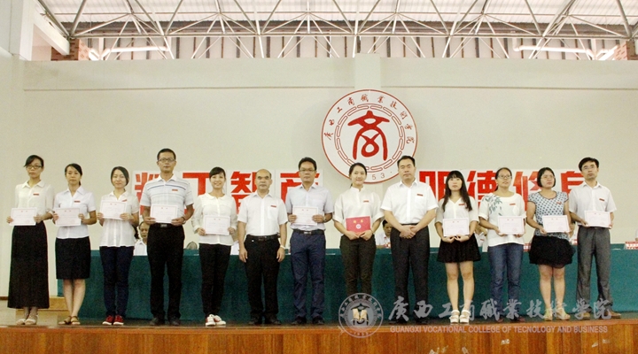 在慶祝教師節大會上,李仕欽副院長宣讀了學2014-2015年優秀輔導員、班級主任的表彰文件。覃武云書記、陳杰院長為獲獎的老師頒獎并與受表彰的老師合影留念。