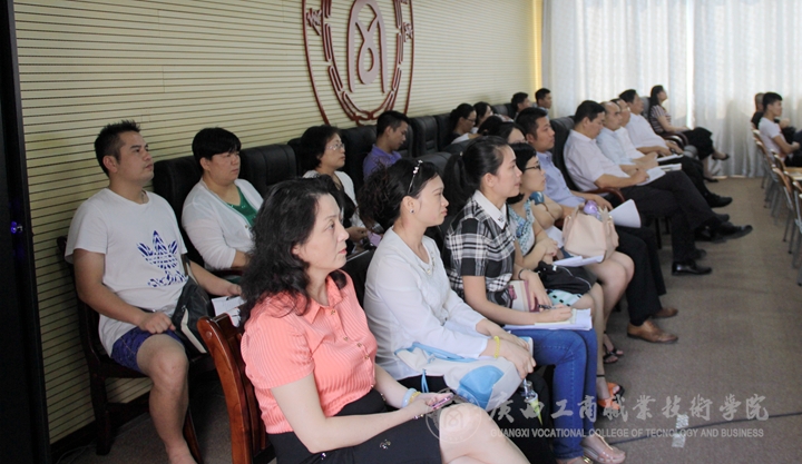 2015年9月14日下午,學院院長陳杰教授的第一堂思想政治理論課暨院長公開課在2214視頻會議室進行。學院黨委覃武云書記、蒙啟成副書記、李維副院長、韋勝強處長、各系部領導、各專業負責人以及社科部全體教師和營策1502、物流1503、工商1507班全體同學聆聽了本次公開課。