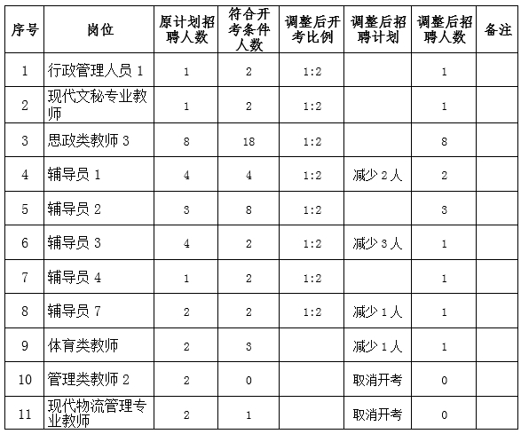 (二)現(xiàn)代文秘專業(yè)教師崗位開考比例調(diào)整為1:2。