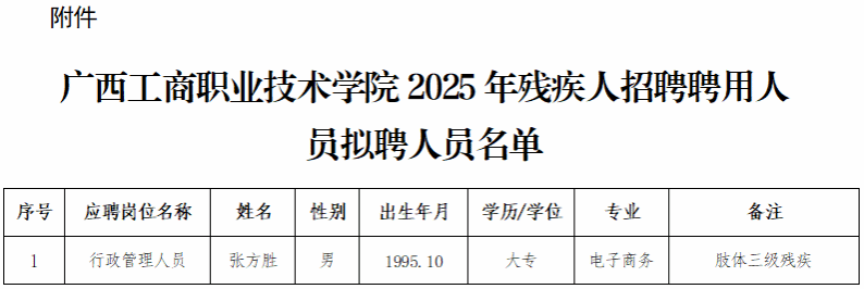 附件:廣西工商職業技術學院2025年殘疾人招聘聘用人員擬聘人員名單