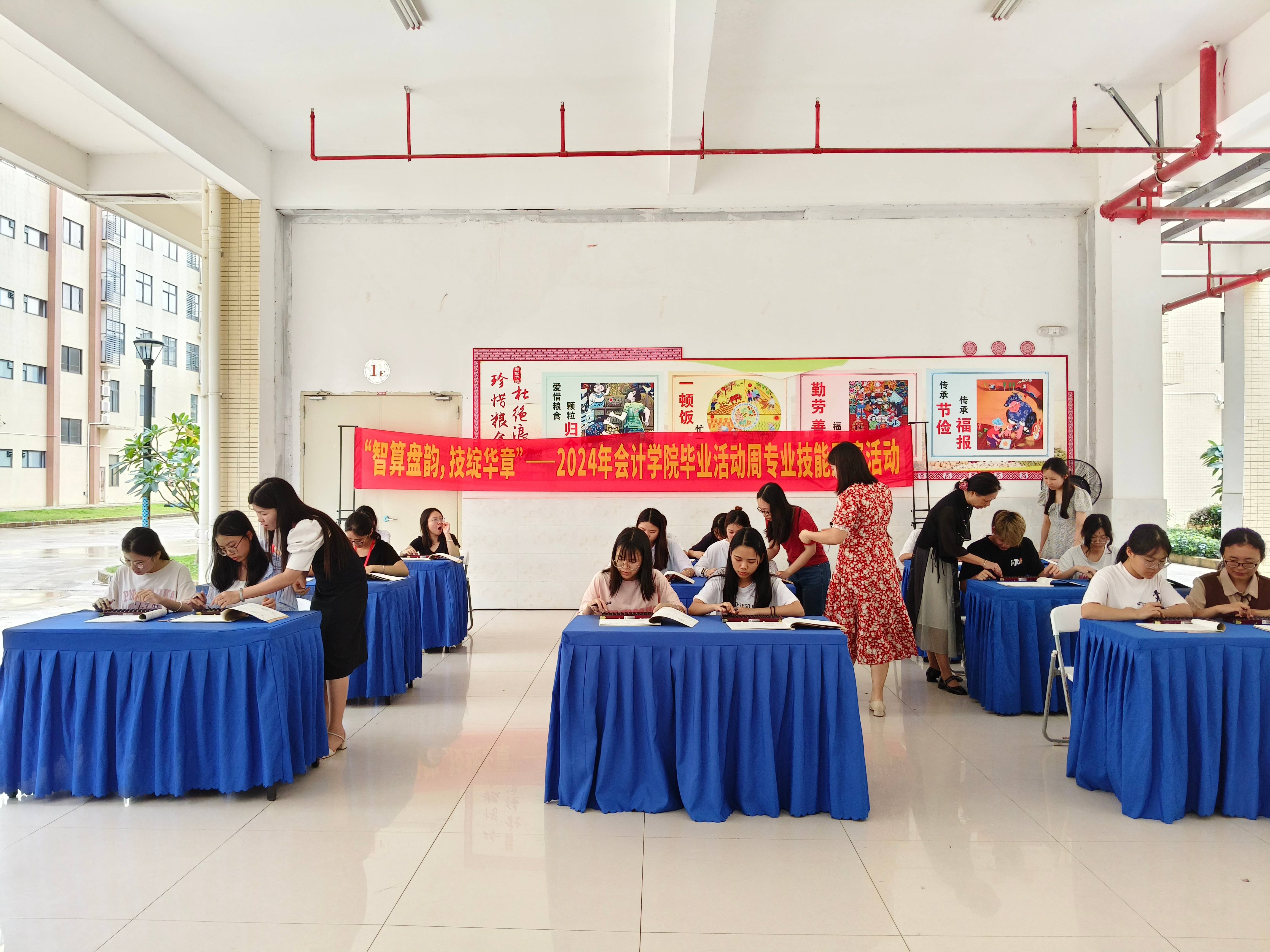 為了在2024年畢業活動周上全面展示智慧會計專業群的特色和專業建設成果,會計學院2024年6月26日下午在武鳴校區A5架空層舉辦“乘珠算之韻味,展技能之風華”技能比賽,以珠算競賽和財務機器人對話的方式展示傳統會計文化與數字經濟時代會計的發展。