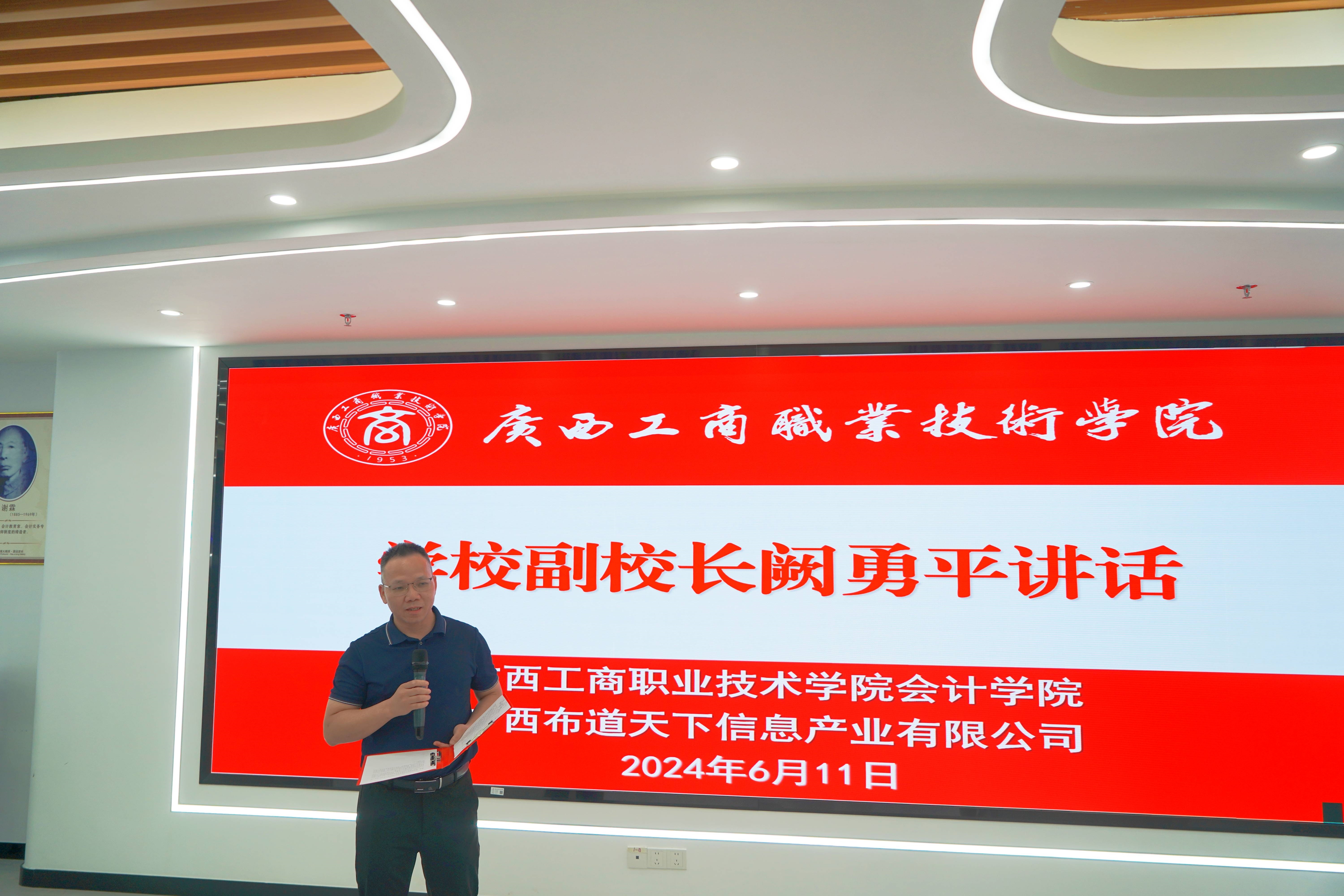 會計學院副院長譚玉娥、教研室主任趙冉、會計信息管理專業帶頭人余偉、廣西布道天下信息產業有限公司總經理袁開、技術總監張凌坤、企業導師吳泓以及《數智產業-BIP現場工程師》班全體學生參加。