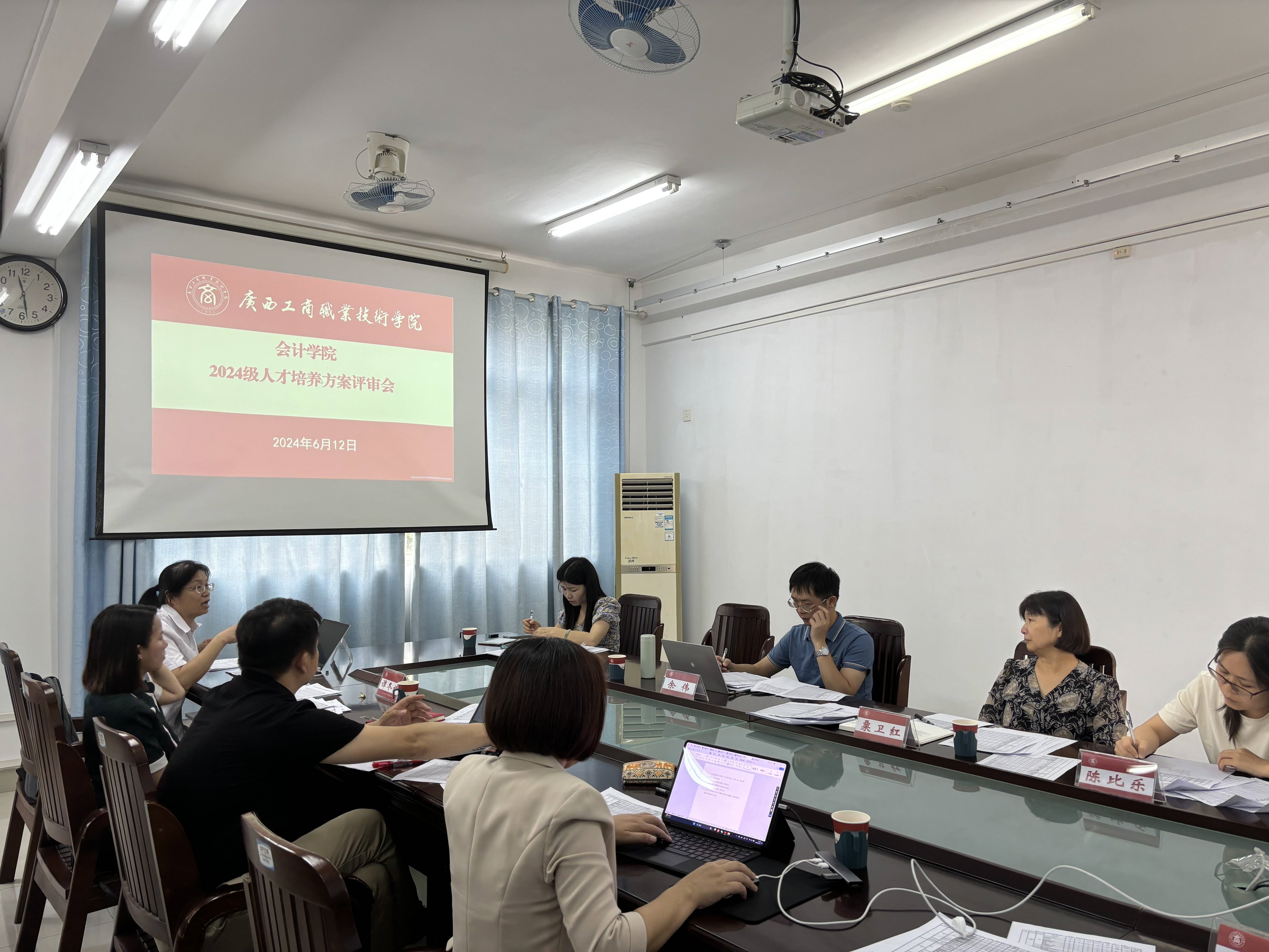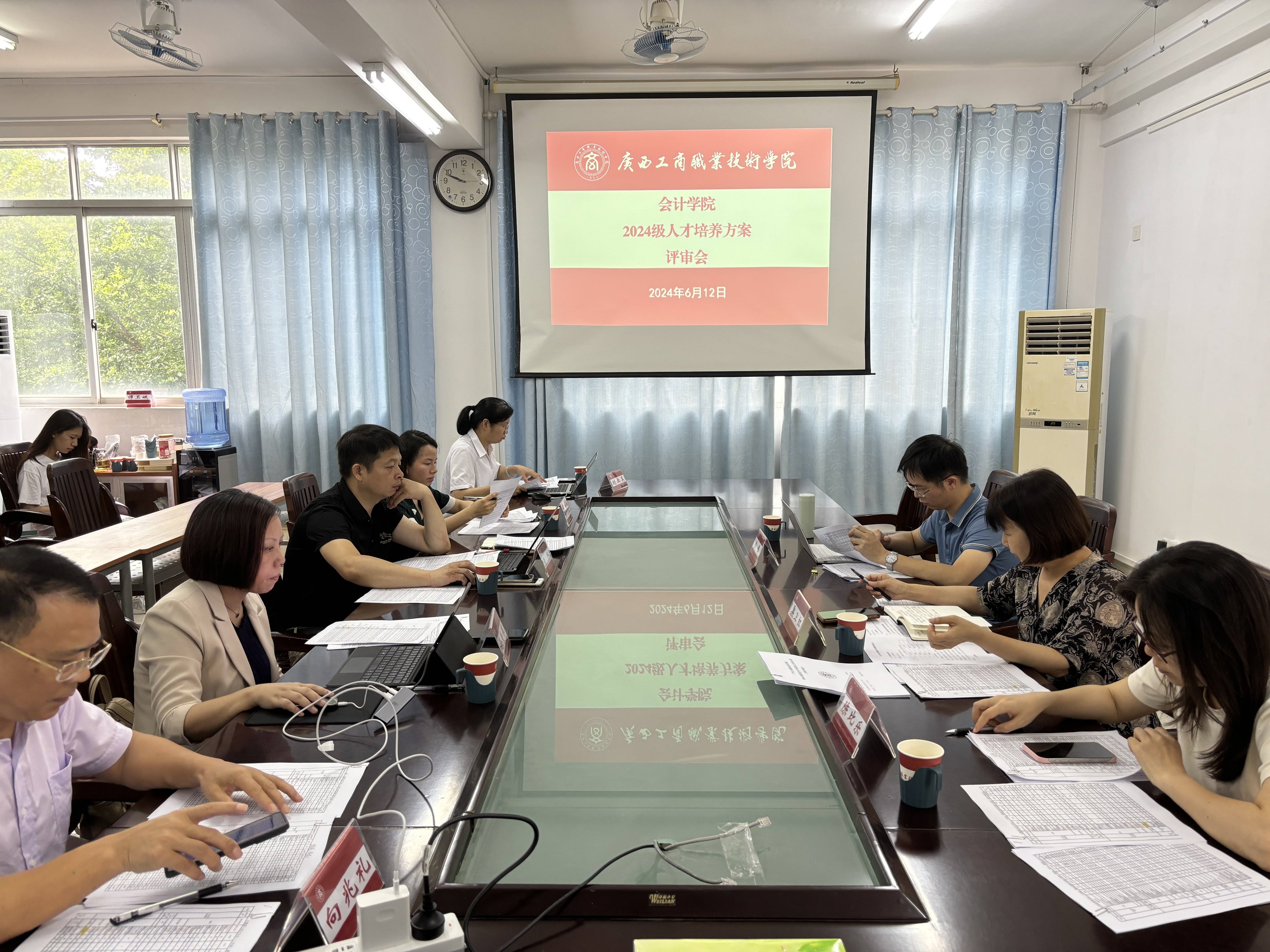 2024年6月12日上午,會計學院在鵬飛校區2109會議室召開了2024級人才培養方案專家評審會。廣西國際商務職業技術學院會計學院院長徐愛菲教授、廣西職業技術學院向兆禮教授、廣西布道天下信息產業有限公司總經理袁開、廣西速佳企業管理集團有限公司辦公室主任譚冬婷、中瑞岳華稅務師事務所集團有限公司廣西分公司負責人劉業美受邀對會計學院2024級人才培養方案進行專家評審工作。會計學院院長粟衛紅主持此次會議,大數據與審計專業帶頭人陳比樂、會計信息管理專業帶頭人余偉、會計學院教務科科長梁亞兵等出席此次評審會。