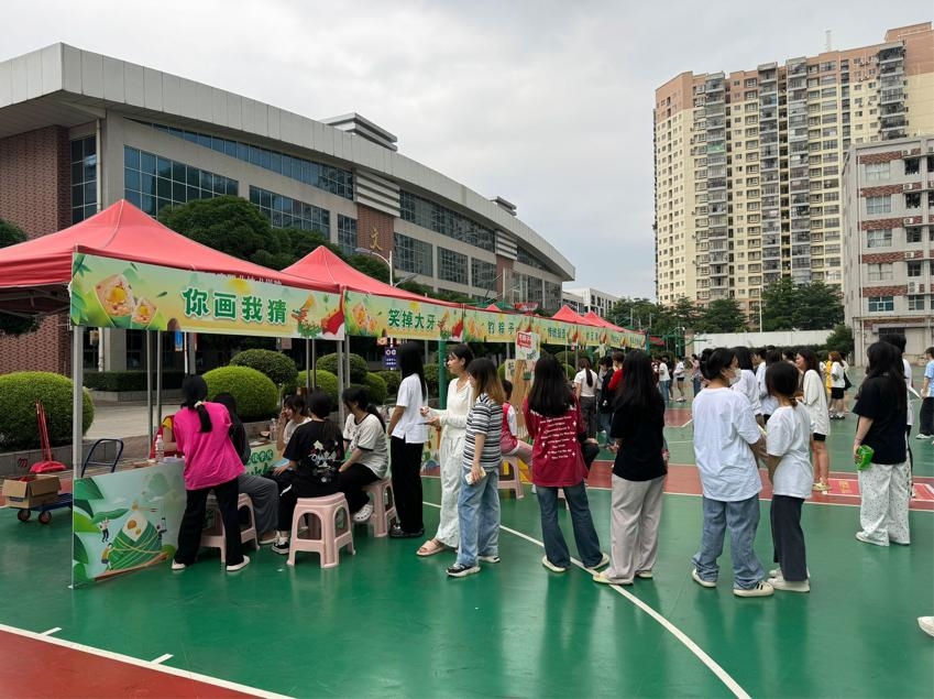 游園會(huì)上,傳統(tǒng)投壺游戲吸引了眾多師生的目光,投壺作為古代一種高雅的投擲游戲,不僅考驗(yàn)技巧,更體現(xiàn)了傳統(tǒng)文化的魅力;旱地龍舟比賽講究配合,同學(xué)們齊心協(xié)力,將現(xiàn)場(chǎng)氣氛推向了高潮;射五毒游戲射擊懸掛著“五毒”圖案的靶子,寓意驅(qū)除瘟疫、祈求健康。此外還有充滿趣味性的釣粽子游戲、考驗(yàn)技巧的“笑掉大牙”游戲和考驗(yàn)?zāi)跖c創(chuàng)意的“你畫(huà)我猜”活動(dòng)。