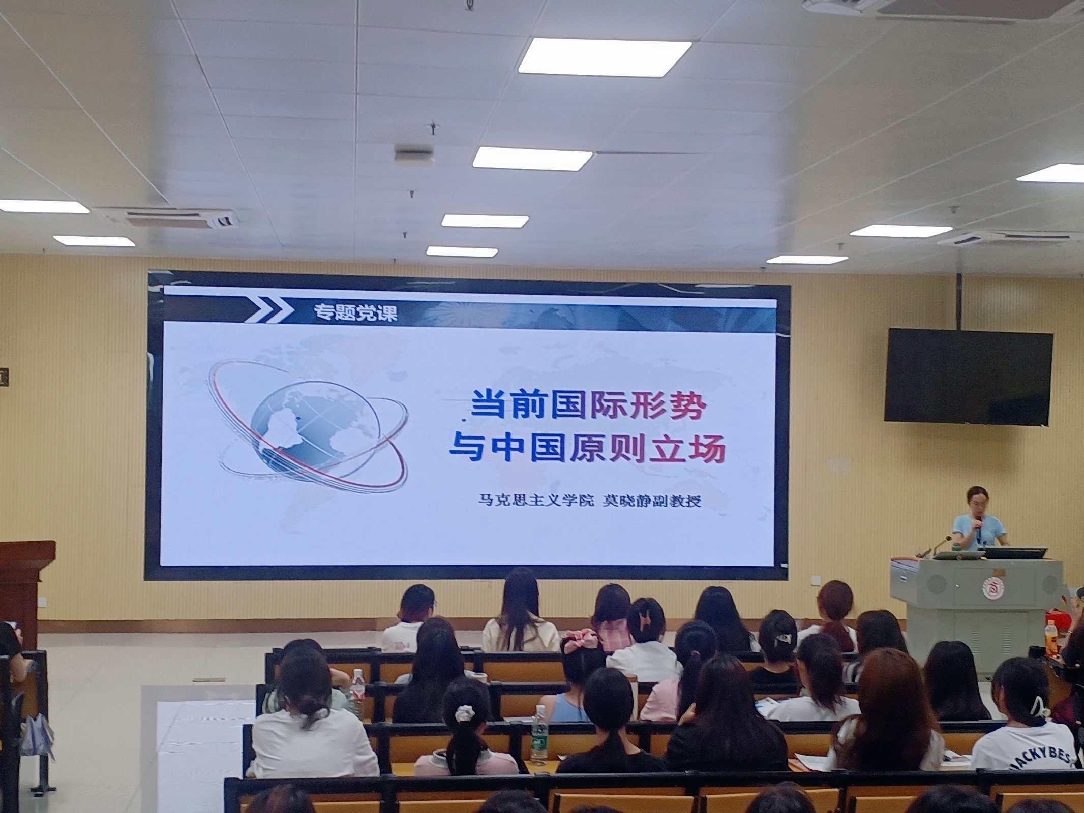 為了增強學員們的愛國意識,認清時代形勢,深入觀察國際局勢變動,沉著應對各種風險挑戰。會計學院分黨校于6月5日12:10在A2—101教室召開入黨積極分子培訓班第十一次黨課活動,此課程由馬克思主義學院莫曉靜副教授主講。