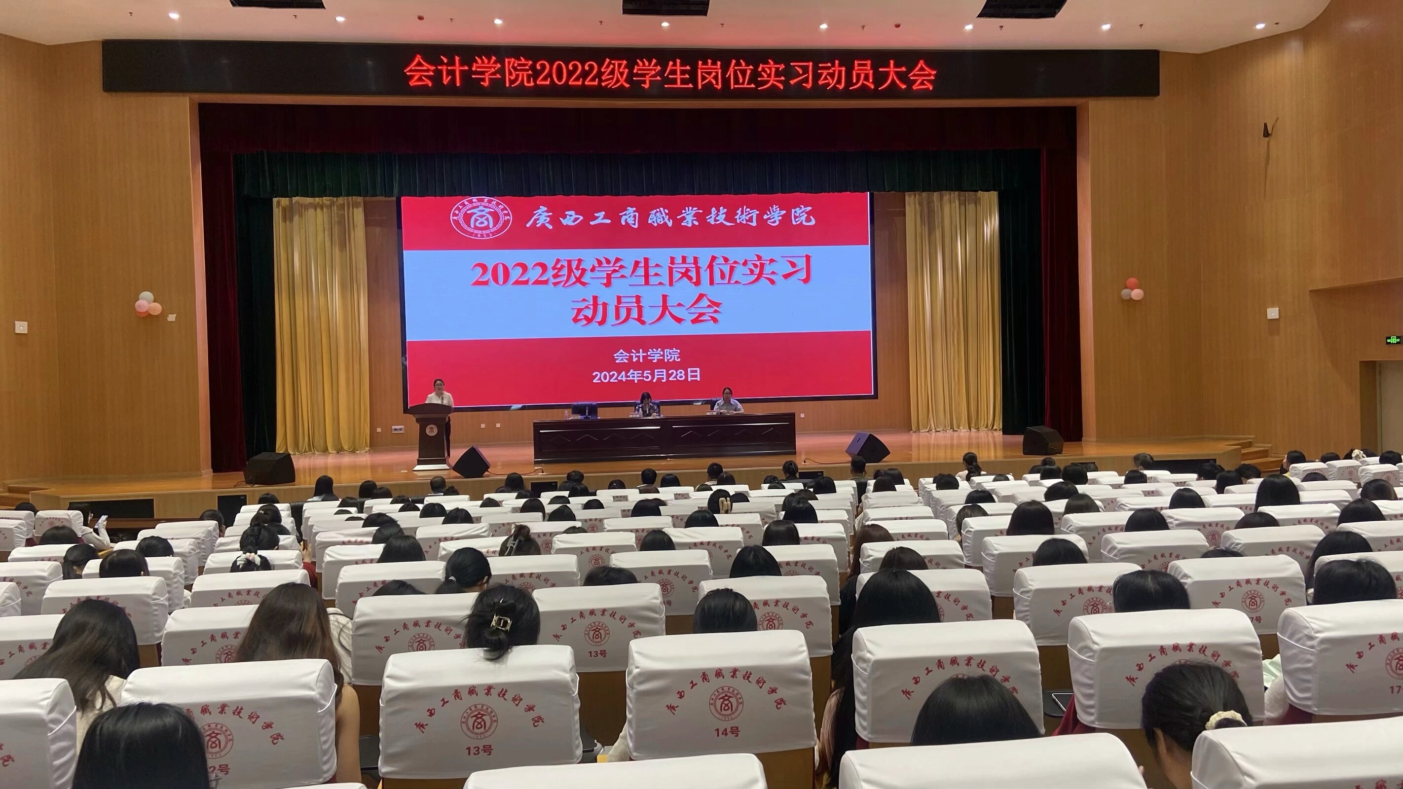 為扎實推進2022級學生的崗位實習工作,確保學生深刻理解實習目的與意義,圓滿完成實習任務,會計學院于5月28日下午在武鳴校區學術報告廳召開了2022級學生崗位實習動員大會。會計學院粟衛紅院長、譚玉娥副院長、李娜副院長及專業建設校外專家向克慧出席會議,全體2022級學生積極參與,會議由譚玉娥副院長主持,騰訊會議同步線上線下進行。