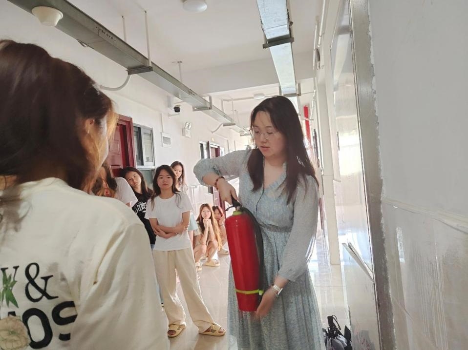 圖1:輔導員為學生講解如何正確第使用滅火器
