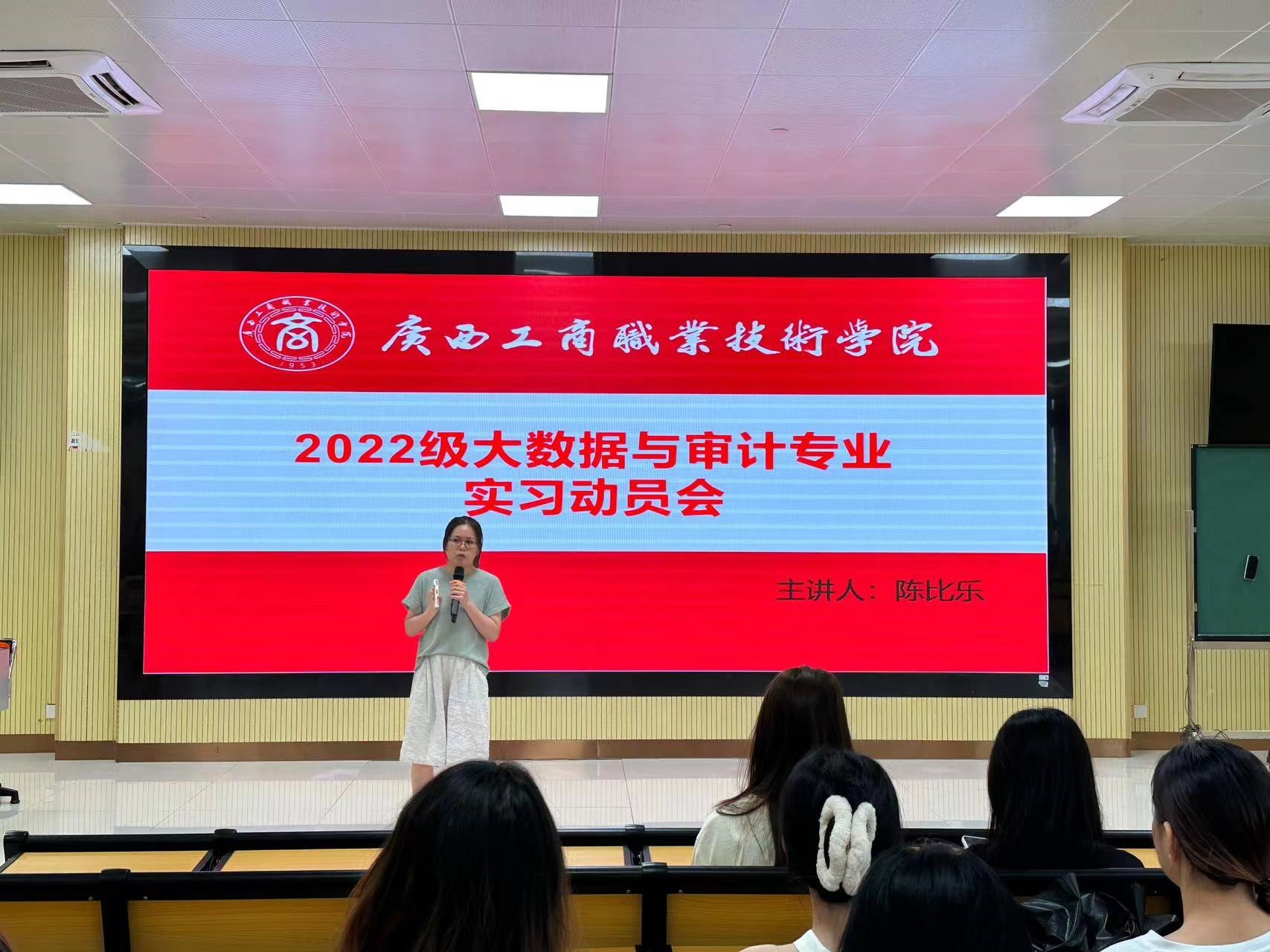 根據(jù)2022級人才培養(yǎng)方案,學生已完成在線期間課程學習,從下個學期開始即將步入社會進行實習工作,為幫助學生樹立正確的就業(yè)觀念,會計學院審計專業(yè)帶頭人陳比樂老師在2024年5月24日下午,組織2022級大數(shù)據(jù)與審計專業(yè)進行實習動員。