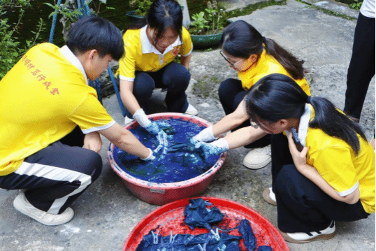 實踐隊隊長姜進志說:“親自參與這次藍染活動,我深感傳統技藝的魅力和無限可能。從選擇布料、設計圖案到扎結、染色的每一步都充滿挑戰。這次活動讓我更加堅定地去傳承傳統文化?!?/p>