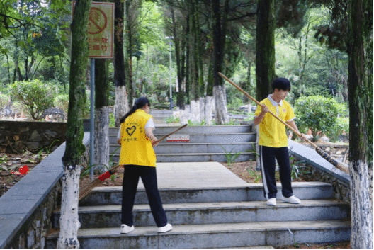 隨后,同學們進入烈士陵園墓區,了解先烈們的英勇事跡;透過每一位英烈的碑文,同學們深深地為先輩們的付出動容,主動為烈士陵園墓區進行清掃。掃過每一片葉子,向先輩們訴說祖國的安定;他們并沒有消失,而是以另一種形式守護著共和國的南疆。