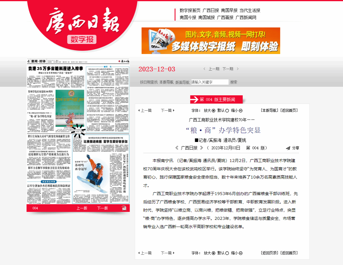 【廣西日?qǐng)?bào)】廣西工商職業(yè)技術(shù)學(xué)院建校70年—— “糧·商”辦學(xué)特色突顯