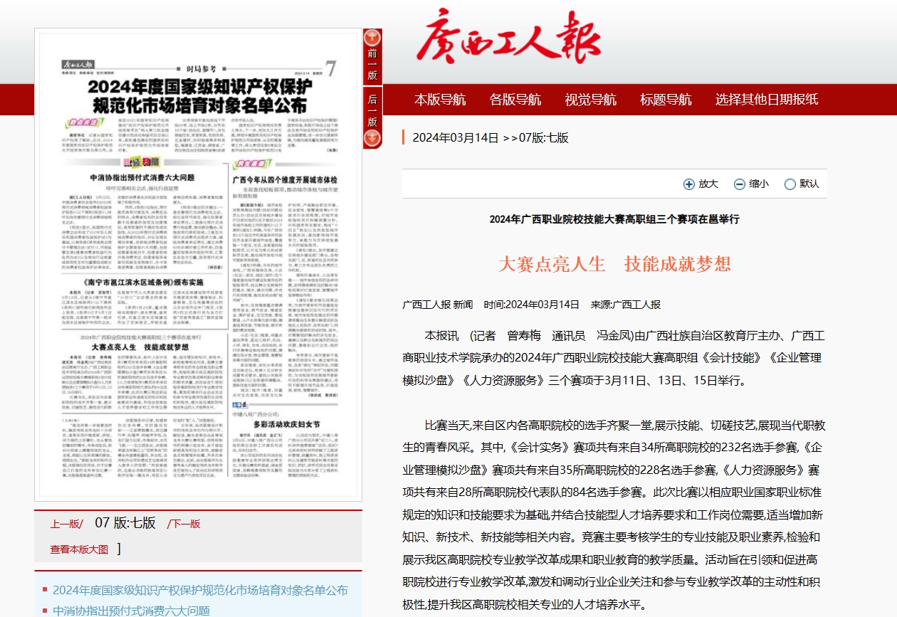 【廣西工人報】2024年廣西職業院校技能大賽高職組三個賽項在邕舉行——大賽點亮人生 技能成就夢想