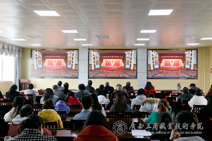 • 12月18日上午10時,中共中央、國務院隆重舉行慶祝改革開放40周年大會,中央領導同志出席大會,中共中央總書記、國家主席、中央軍委主席習近平在大會上發表重要講話。我院組織師生于鵬飛校區視頻會議室集體收看大...