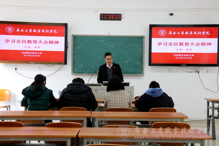 • 2019年2月25日上午,學院黨委宣傳部黨支部在校本部2224教室集體學習全區教育大會精神。本次會議由黨委宣傳部副部長林雯同志主持。會上,林副部長圍繞“深入學習習近平總書記關于教育的重要論述,貫徹落實全區教育...