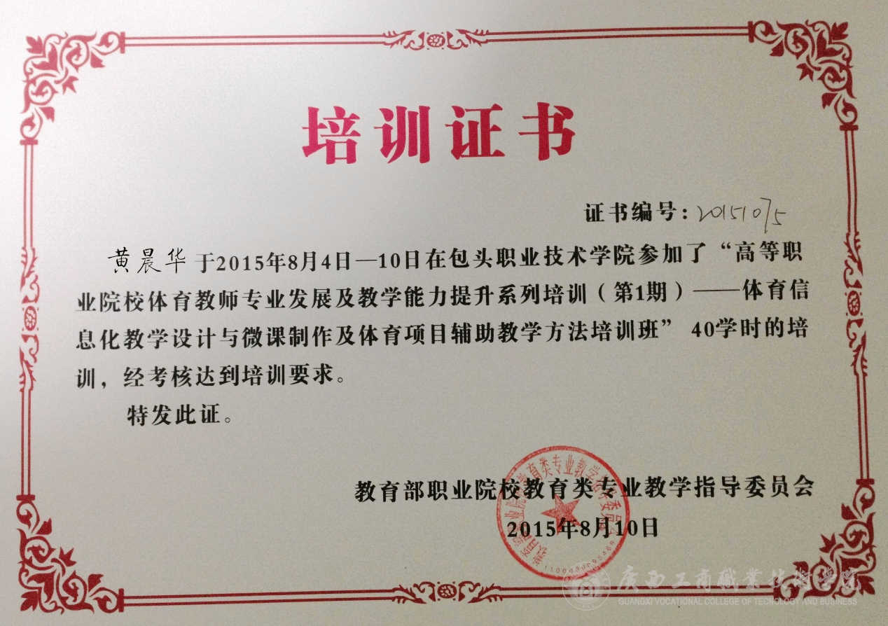 • 2015年8月4—10日,教育部職業院校教育類專業教學指導委員會在內蒙古包頭市舉辦2015年全國高等職業院校體育教師專業發展及教學能力提升系列培訓(第一期)——體育信息化教學設計與微課制作及體育項目輔助教學方...