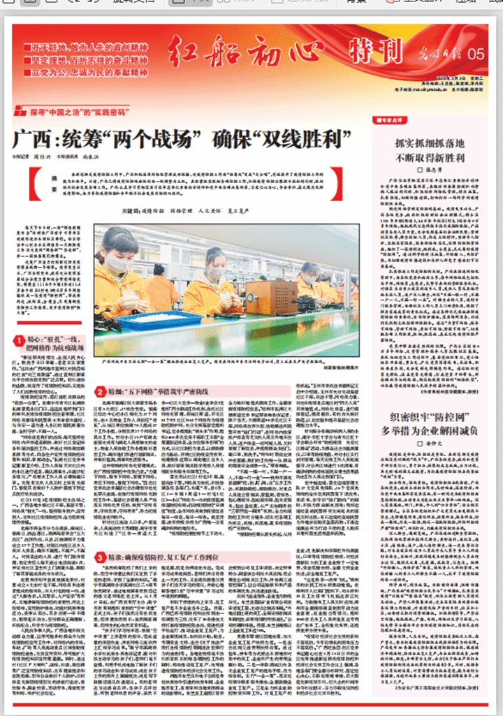 • 疫情就是命令,防控就是責任。在新冠肺炎疫情這場沒有硝煙的“戰斗”中,廣西壯族自治區各級黨委、政府和黨員干部堅定信心、勇于擔當,凝聚起眾志成城、全力以赴、共克時艱的強大正能量,為打贏疫情防控阻擊戰貢...