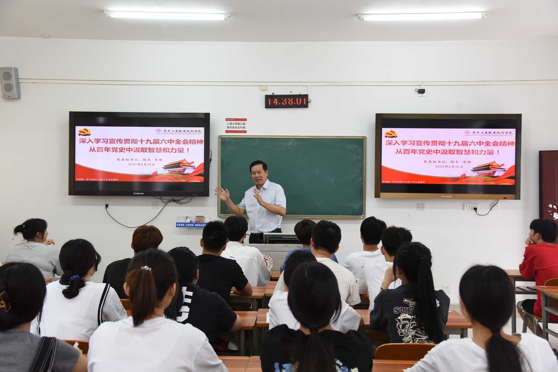 • 6月16日下午,學院黨委副書記、院長李維在鵬飛校區為21級室內專業學生講授題為《深入學習宣傳貫徹十九屆六中全會精神——從百年黨史中汲取智慧和力量》的思政課。李維院長從為什么要做這個《決議》——總結黨的百...