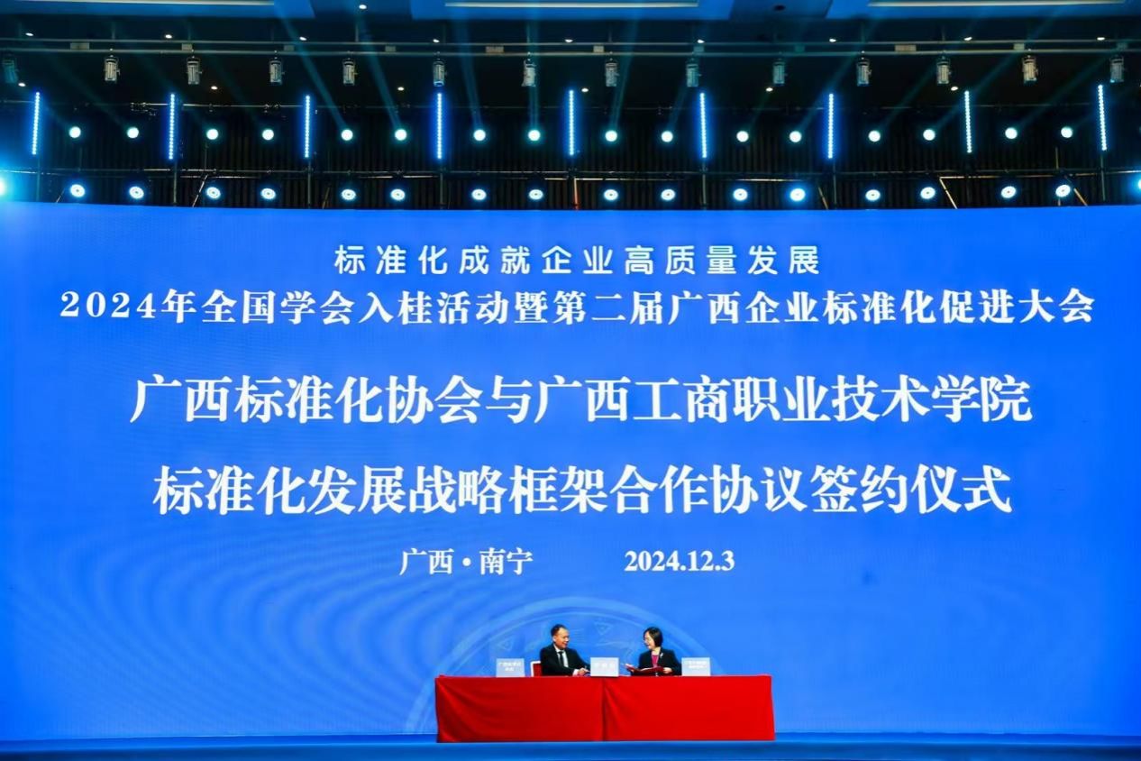 • 12月3日,2024年全國學會入桂活動暨第二屆廣西企業標準化促進大會在南寧國際會展中心舉行。我校作為會校合作單位受邀參加大會。此次大會同步線上直播,逾15萬人線上參會。我校與廣西標準化協會標準化發展戰略框架...
