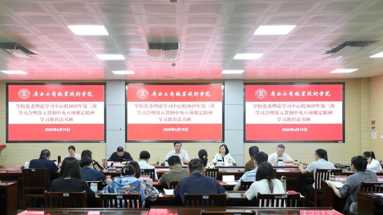 • 6月19日,學校召開黨委理論學習中心組2025年第三次學習會暨深入貫徹中央八項規定精神學習教育讀書班第三次研討會,重點圍繞習近平總書記關于深入貫徹中央八項規定精神學習教育的重要指示批示精神、《習近平關于加...