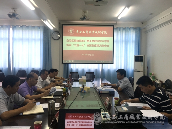 • 2016年6月7日下午,為檢查督促直屬企事業單位抓好“三重一大”決策制度的落實情況,自治區糧食局督查工作組第一組組長、區糧食局辦公室主任許志干,組員區糧食局辦公室調研員袁雙建到我院督察落實“三重一大”決...