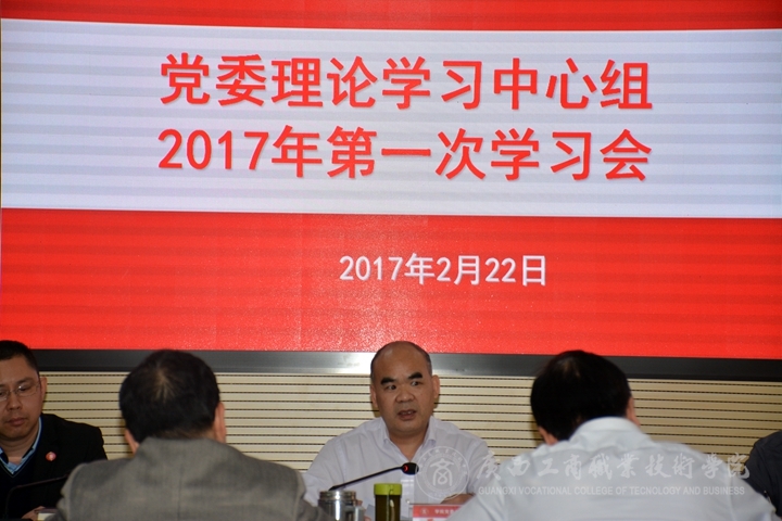 • 2月22日上午,學院在校本部召開黨委理論學習中心組2017年第一次學習會。黨委書記覃武云同志、黨委副書記、紀委書記蒙啟成同志、副廳級調研員黃永蓬同志、副院長陳寧春同志出席會議。學院各部門負責人、各系黨總支...