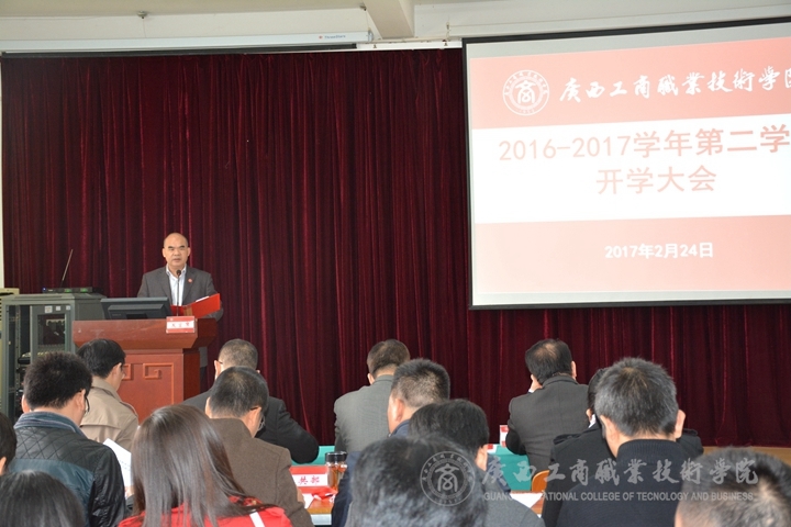 • ?????? 2017年2月24號上午,我院于校本部報告廳舉行了開學大會,我院領導班子成員以及全體教職工參加了此次會議,會議由覃武云書記主持,學院院長陳杰做開學工作報告。(覃武云同志主持開學大會)(陳杰同志作開...