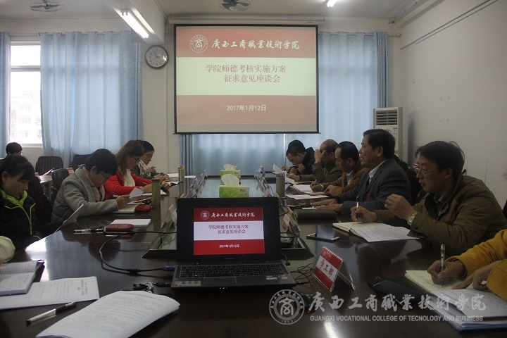 • 2017年1月12號下午,我院在2109會議室召開了師德考核實施方案征求意見座談會。學院黨委副書記蒙啟成出席了本次會議,學院各部門相關負責人參加會議,會議由學院黨委宣傳部部長韋勝強主持。 &...
