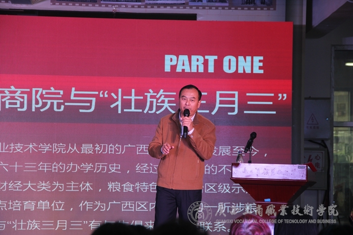 • 2017年3月28日,我院在學院校本部文體館一樓舉辦廣商院“壯族三月三”民族文化教育活動日,學院黨委副書記蒙啟成出席活動,他不僅現場作精彩有趣的“三月三”專題講座,講起了故事,還唱起了山歌。學院各部門老師...