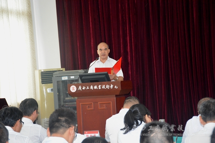 • ?????? ?2017年8月25日上午,我院領導班子成員及全體教職工齊聚校本部報告廳,召開開學大會。學院黨委書記覃武云主持會議。院長陳杰做開學工作報告。?????? 會上,20多名新進教師在黨委組織部(人事處)副部長陶...