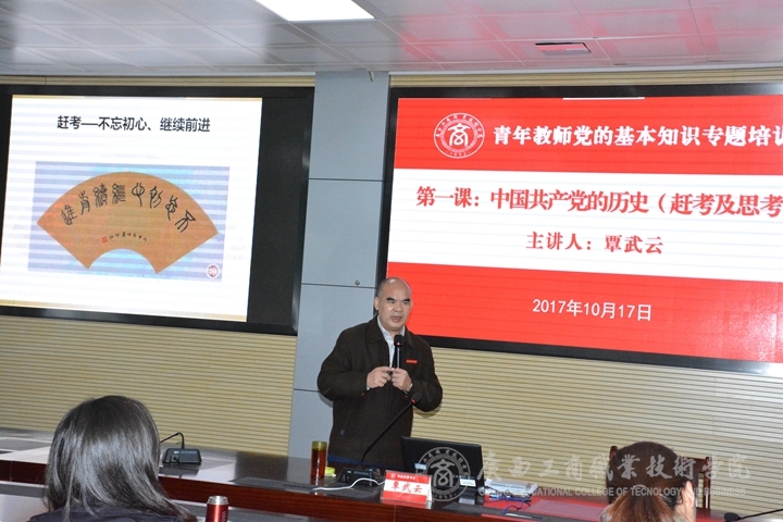 • ? ? ? ? 2017 年 10 月 17 日下午,我院召開青年教師黨的基本知識專題培訓班開班動員會,學院黨委書記覃武云作開班動員講話并主講題為《中國共產黨的歷史》(趕考及思考)專題理論學習第一課。本次動員會由學院黨...