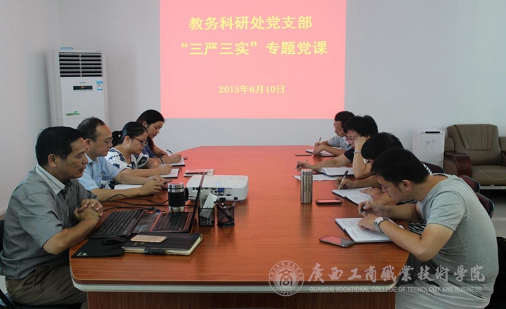 • 2015年6月10日上午10點(diǎn),根據(jù)學(xué)院的安排,教務(wù)科研處黨支部開展了“三嚴(yán)三實(shí)”專題黨課活動。黨課由教務(wù)科研處韋勝強(qiáng)處長主持,教務(wù)科研處黨支部全體黨員參加,作為聯(lián)系領(lǐng)導(dǎo),李維副院長也出席了教務(wù)科研處黨支部...