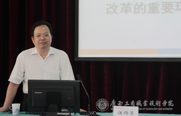 • 2015年6月9日下午,我院在校本部教學(xué)樓一樓報告廳舉辦依法治校專題講座。自治區(qū)教育廳政策法規(guī)處處長伍錦昌作了題為《全面推進(jìn)依法治教依法治校》的專題講座。學(xué)院領(lǐng)導(dǎo)覃武云、蒙啟成、李仕欽、李維出席,學(xué)院副...
