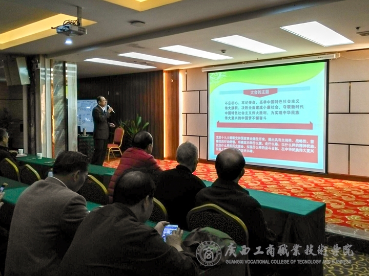 • ? ? ? ? 12月4日晚,我院在校本部會議室舉辦學習貫徹十九大精神,維護憲法權威知識講座。本次講座由學院黨委副書記、紀委書記蒙啟成主講,黨委宣傳部部長韋勝強主持。學院各系學生代表參加講座。? ? ? ? 會議開始...