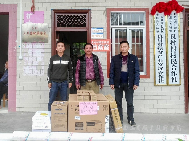 • 11月上旬,廣西工商職業技術學院將價值9萬多元的多功能復印機、電腦、打印機、空調等一批辦公用品分別送至學院定點幫扶的貧困村陸川縣馬坡鎮靖西村、珊羅鎮四樂村、清湖鎮水亭村、清湖鎮那若村、古城鎮八角村、古...