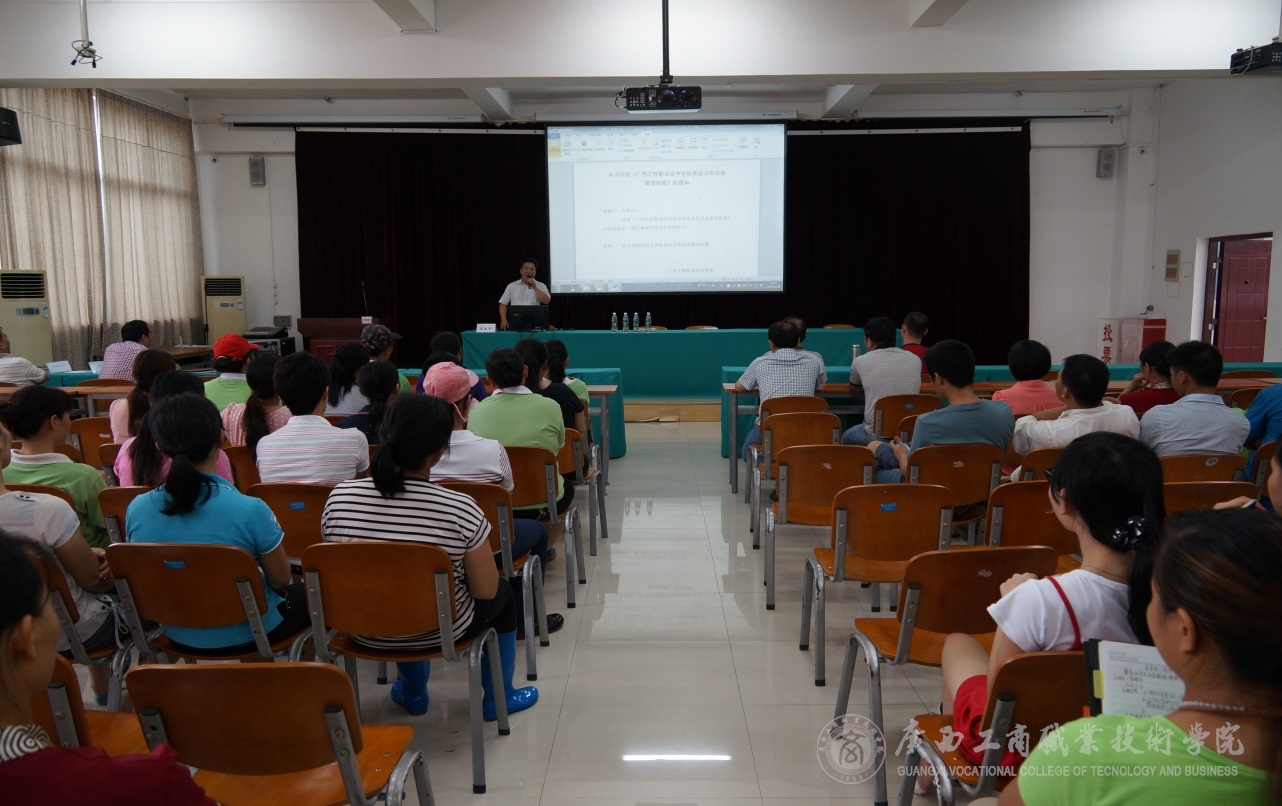 • 2015年6月10日下午,我院舉辦學院食堂全體員工食品安全知識培訓暨食品安全應急模擬演練培訓班,學院領導李仕欽副院長、后勤處工作人員、學院食堂全體員工參加培訓班。 培訓班上,李仕欽副院長做了講話。他指出,...