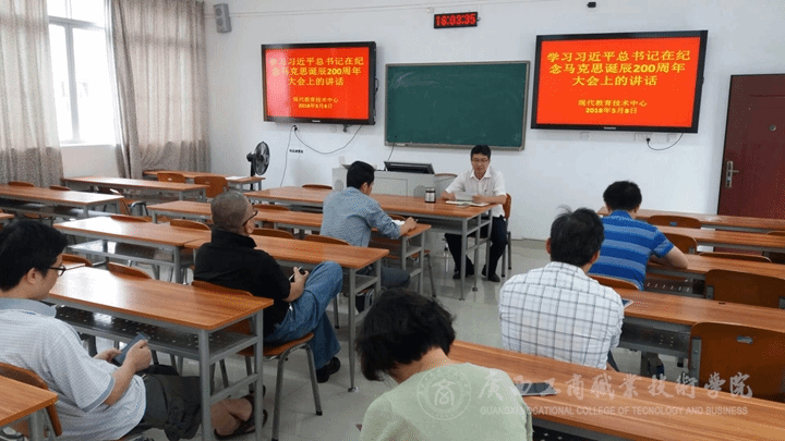 • ? ? ? ? 2018年5月8日下午,現代教育技術中心全體同志在2323教室召開部門會議,集中學習習近平總書記在紀念馬克思誕辰200周年大會上的重要講話。? ? ? ? 本次部門集中學習由中心黨支部書記林雯同志主持并傳達講話...