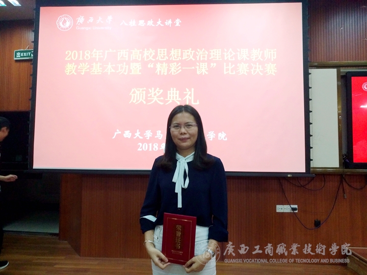 • ? ? ? ? ?2018年 9月1日,由自治區高校工委、教育廳主辦,廣西大學馬克思主義學院承辦的2018年廣西高校思想政治理論課教師教學基本功暨“精彩一課”比賽決賽落下帷幕,我部林勇靈老師參賽,部門全體老師現場觀摩...