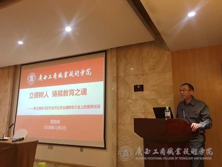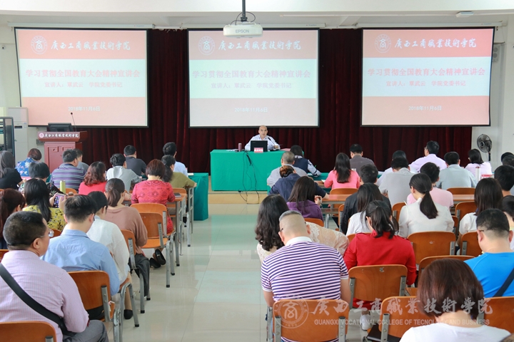• 11月6日下午,學院于鵬飛校區報告廳召開學習貫徹全國教育大會精神宣講會。學院全體教師(含“雙肩挑”教師)、各系學生代表參加宣講會。本次宣講會由學院黨委書記覃武云主講。覃武云書記從全國教育大會的背景展開...