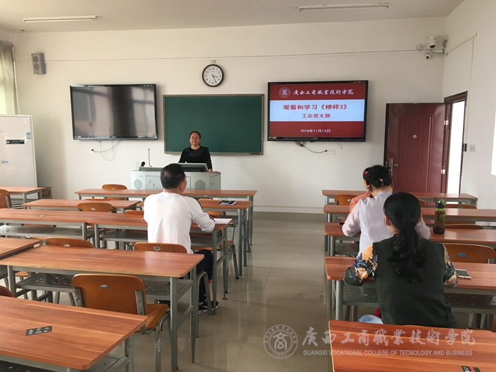 • 2018年11月13日下午,工會黨支部在鵬飛校區教學樓2411教室集體觀看和學習《榜樣3》專題節目,學習會由支部書記王桂玲同志主持。全體黨員同志集體觀看2018年《榜樣3》專題節目中的3位優秀黨員的榜樣事跡。“無聲選...